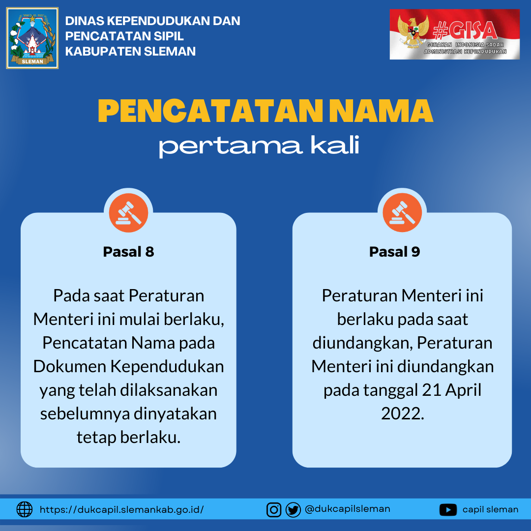 PENCATATAN NAMA PADA DOKUMEN KEPENDUDUKAN BERDASARKAN PERATURAN MENTERI DALAM NEGERI REPUBLIK INDONESIA NOMOR 73 TAHUN 2022 08/06/2022 Admin Dukcapil Berita 0
