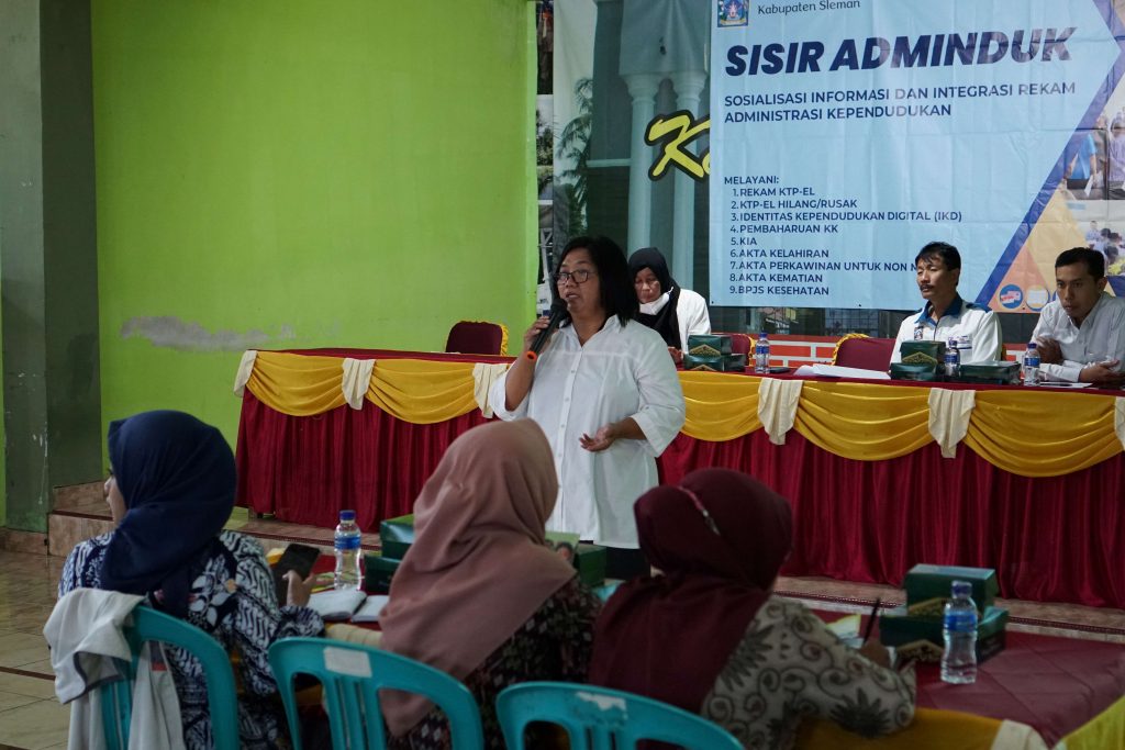 - Sosialisasi Informasi, Rekam Data, dan Pelayanan Administrasi Kependudukan (SISIR ADMINDUK) yaitu sosialisasi aminduk dengan peserta aparat, pengurus lembaga kemasyaratan dan pelayanan jemput bola bagi penduduk di Kalurahan setempat. Pelaksanaan secara rutin di 17 kecamatan/kapanewon dengan lokasi kalurahan digilir. Kegiatan juga dilaksanakan atas permintaan Pemerintah Kalurahan atau Padukuhan.